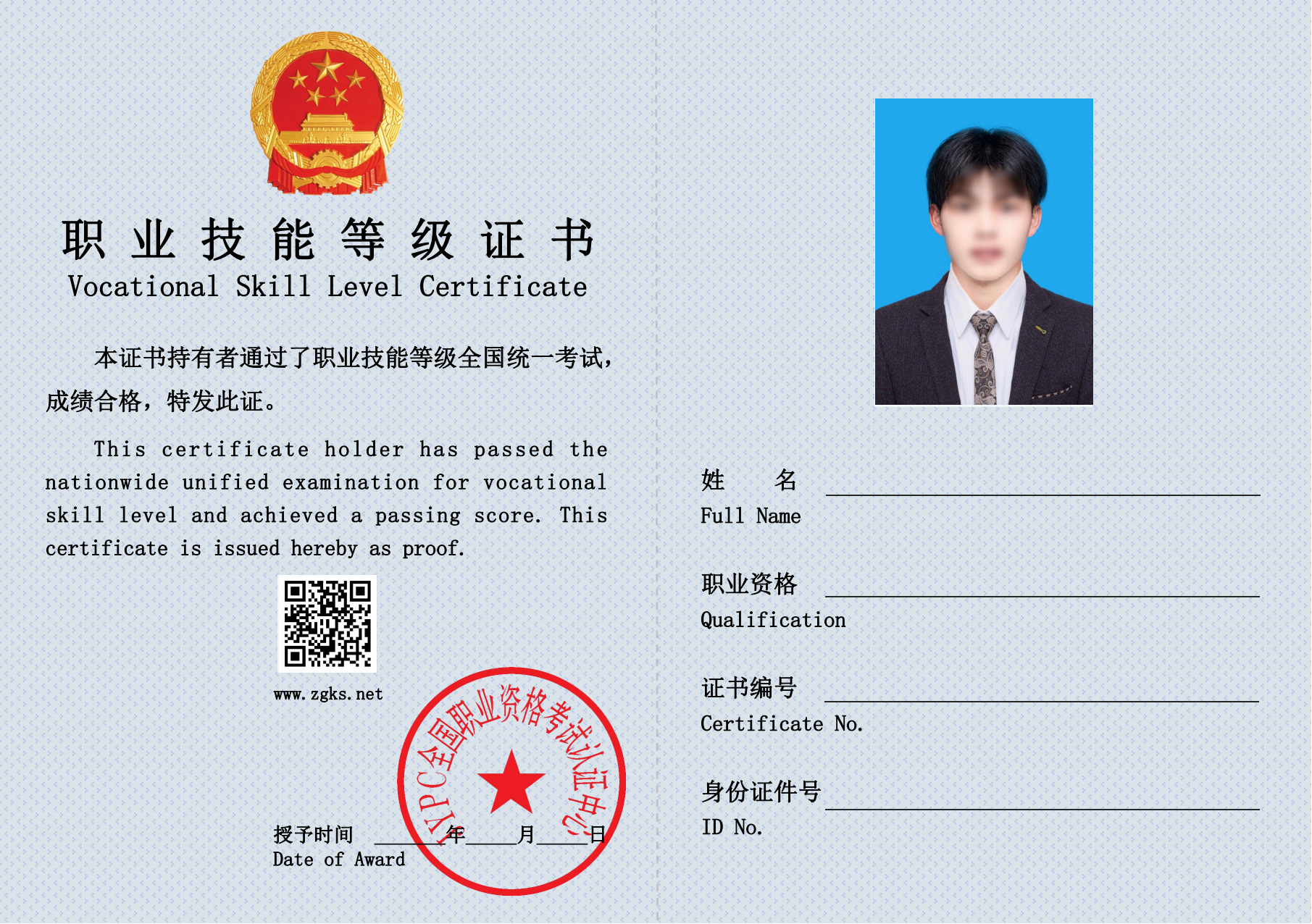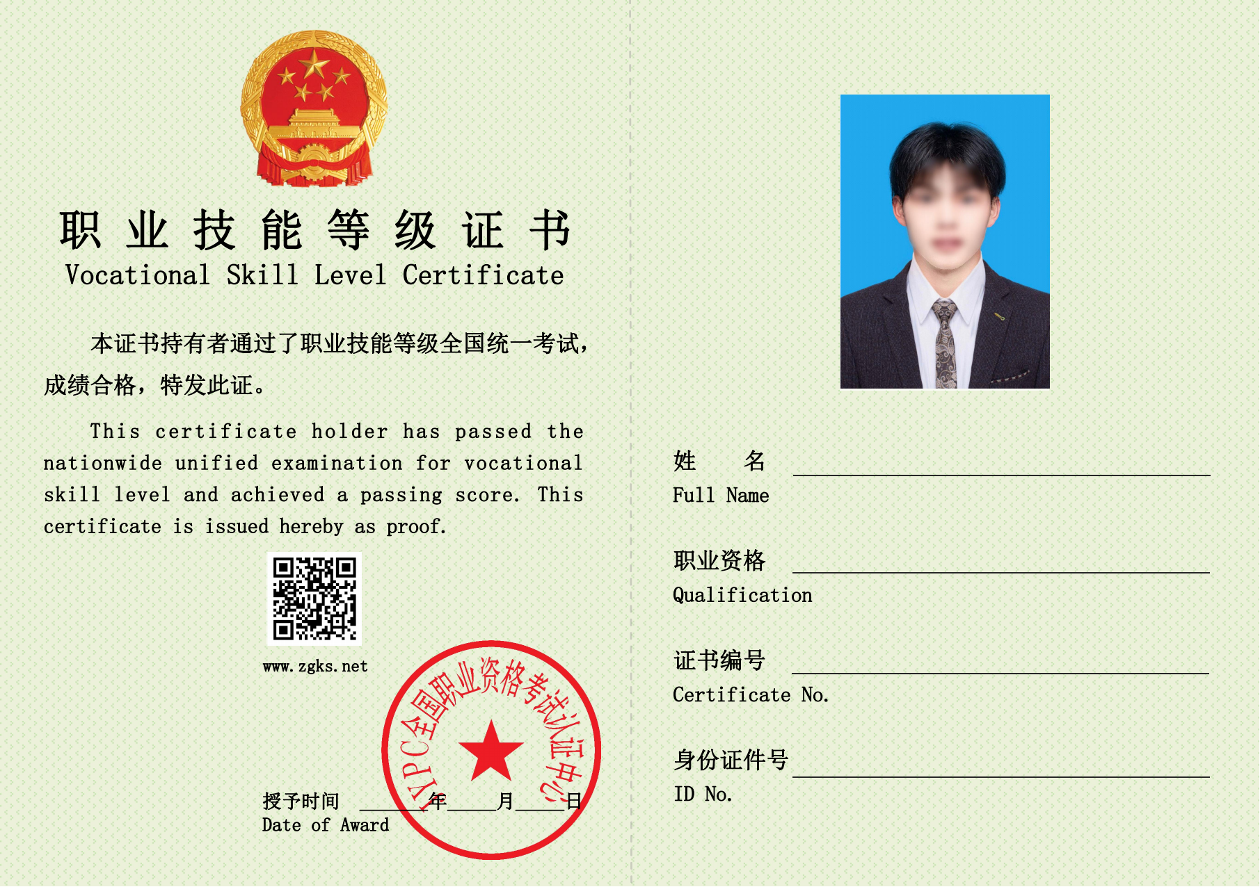 职业技能等级证书样本
